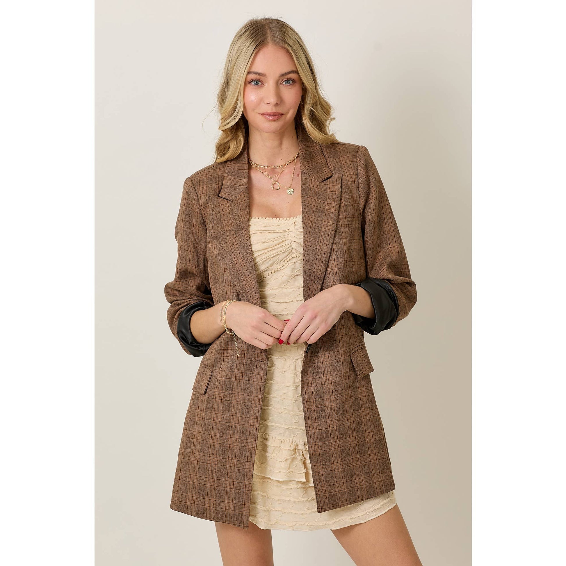 Tailored and timeless, this lightweight plaid blazer adds a polished touch to any outfit. Designed with a relaxed fit and breathable fabric, it’s perfect for layering during transitional seasons-ideal for work, weekends, or casual chic looks.