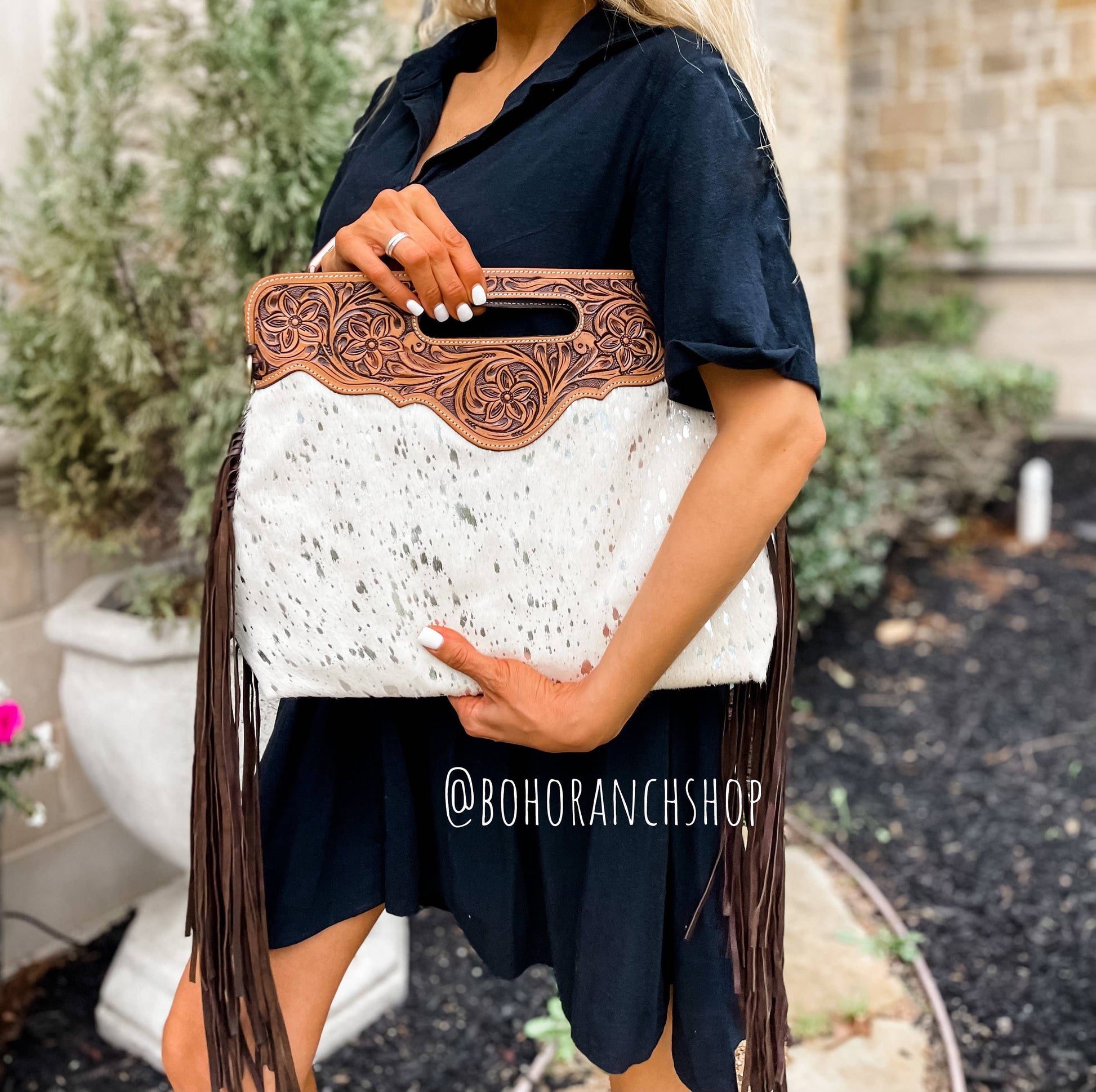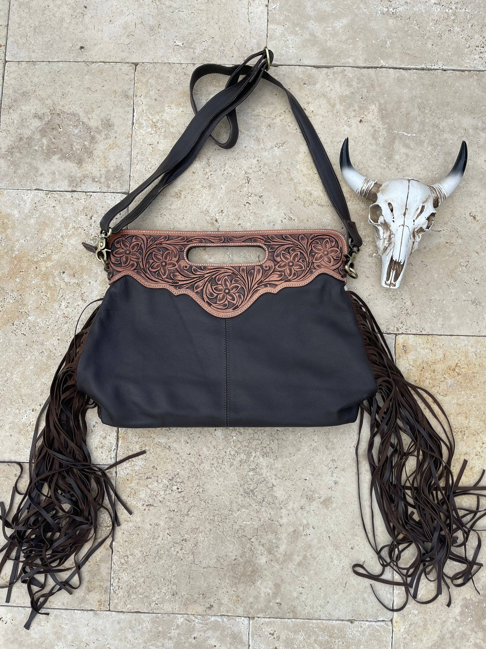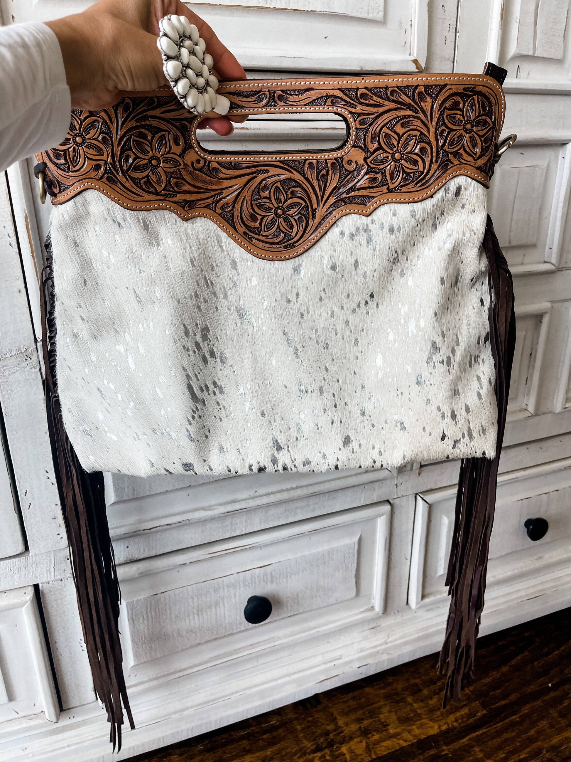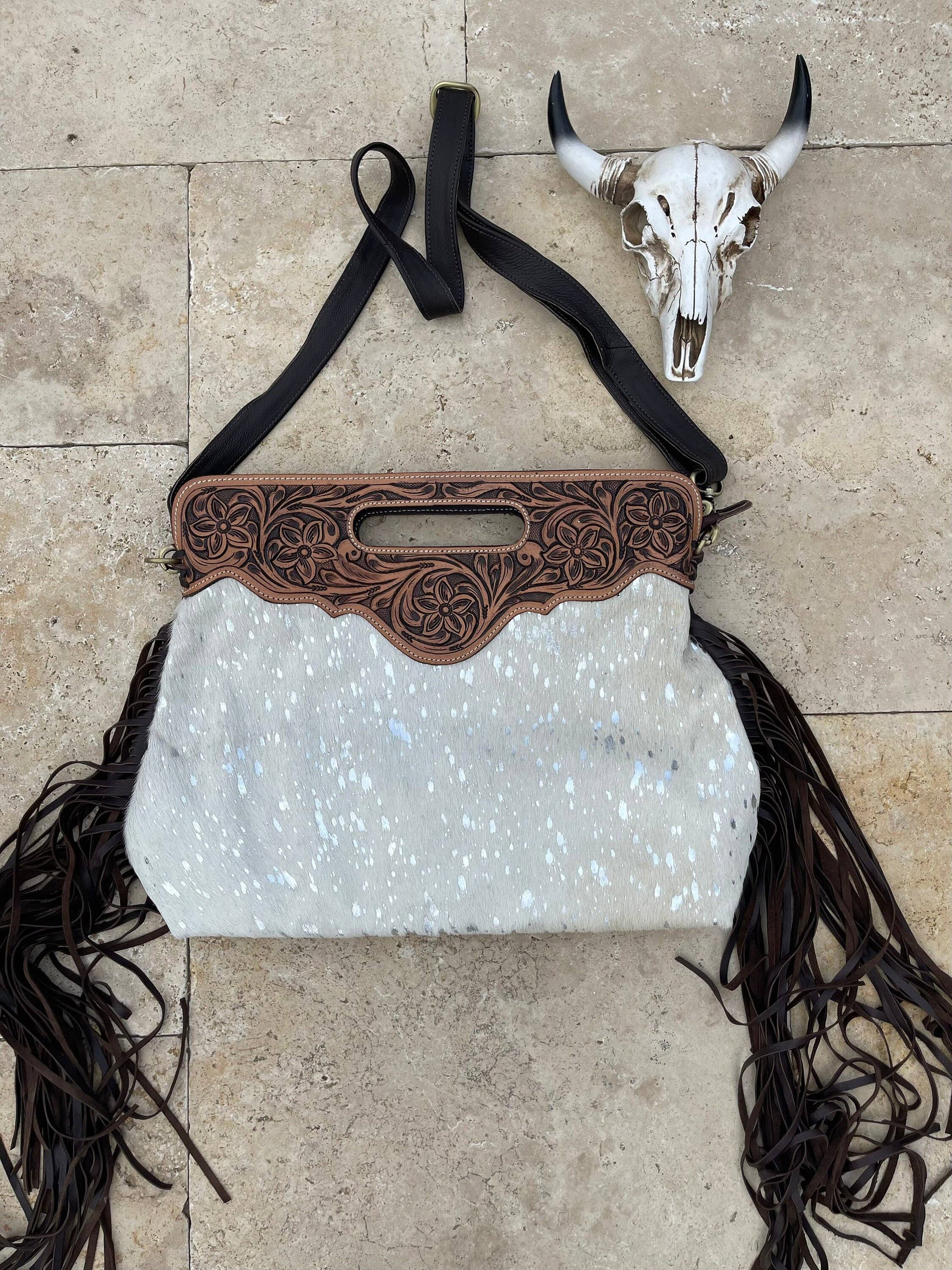 The Margie!!!! She's a tooled Cowhide Crossbody This purse can be used as a clutch handbag or shoulder handbag. 100% genuine leather 100% genuine cowhide !!!