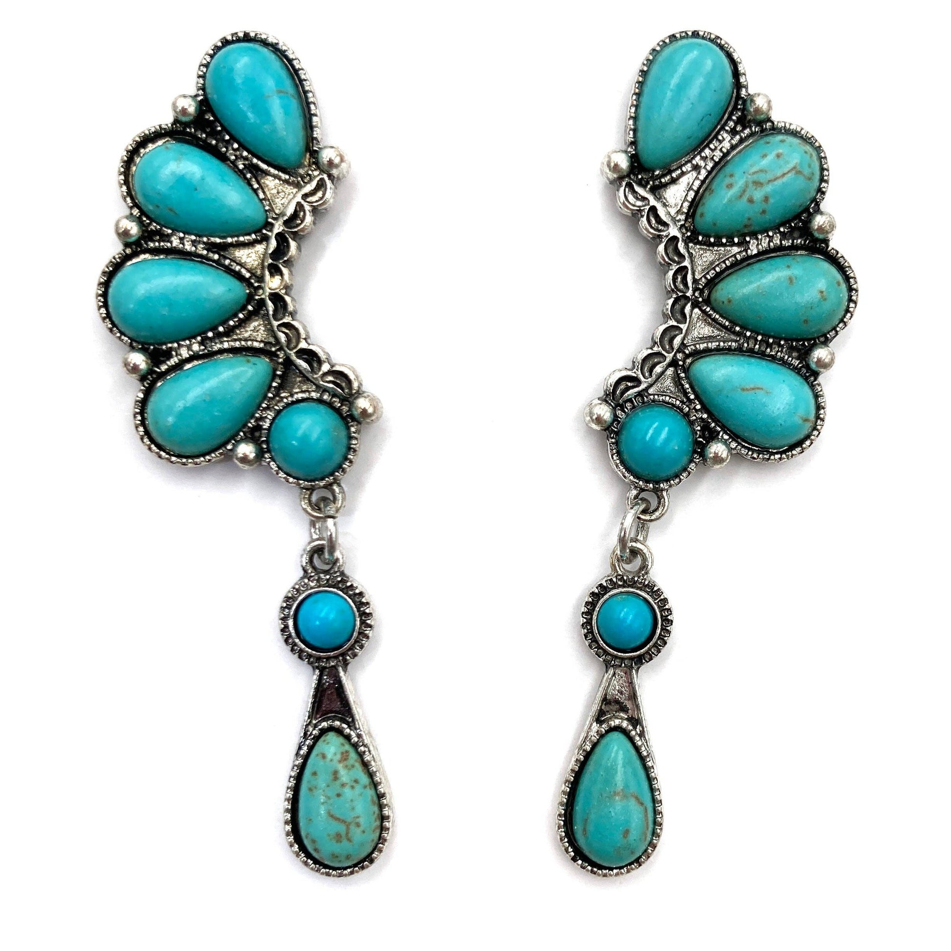 Turquoise Teardrop Stone Western Ear Climber Earrings