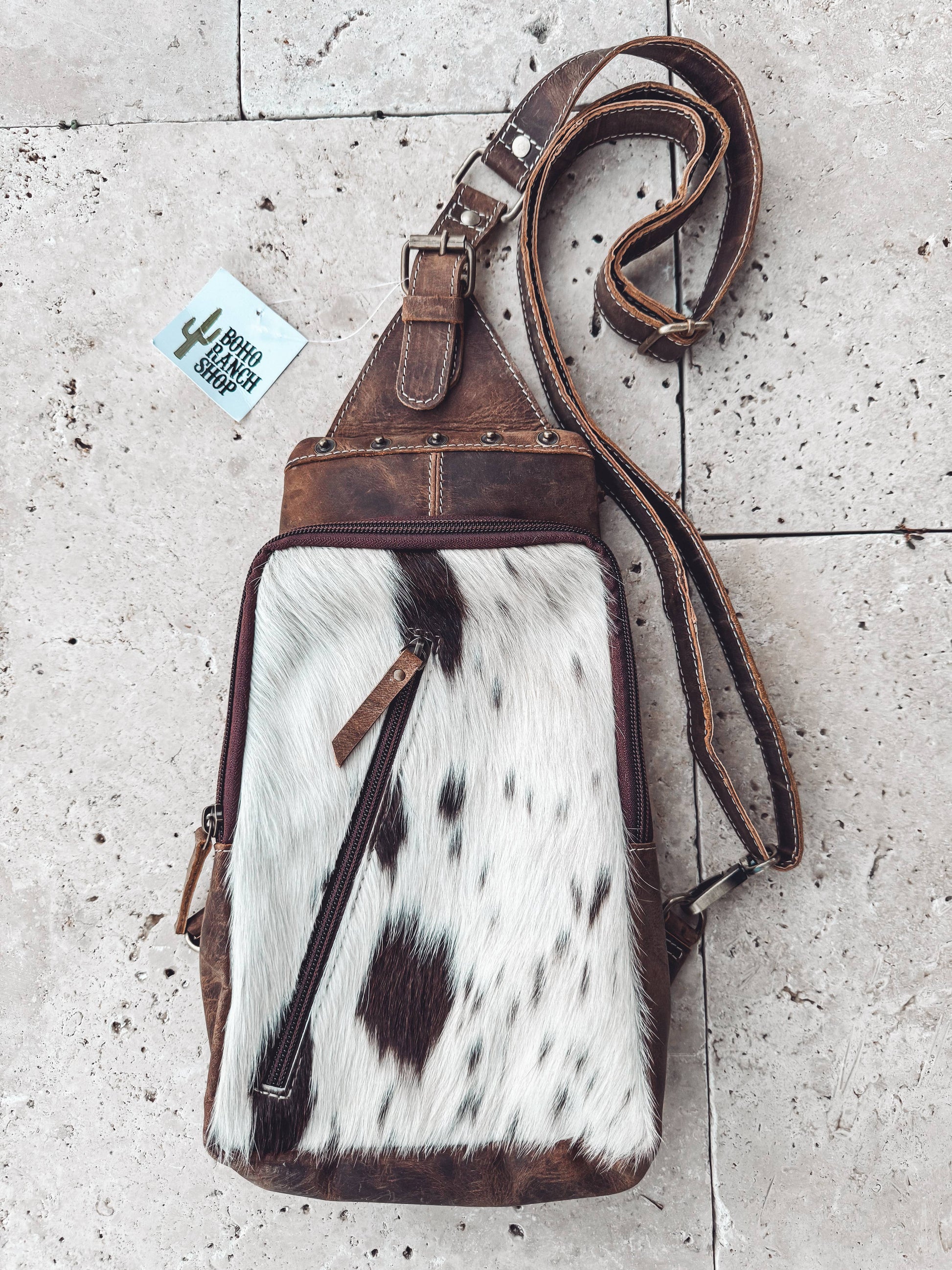 Western Cowhide Leather Sling Bag - travel bag chest bag
